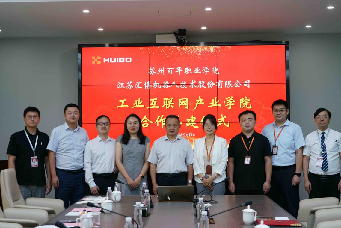 9月10日上午,副校长沈宗根带领校长办公室、对外合作处、工学院等一行,在汇博机器人苏州总部与汇博机器人培训部总监袁芳及其团队就校企合作等事宜进行深入交流,并举行了工业互联网产业学院合作共建仪式。苏州独墅湖科教创新区高校合作发展局副局长沈浈真、独墅湖创业发展中心创新教育部副部长杨勇出席共建仪式。