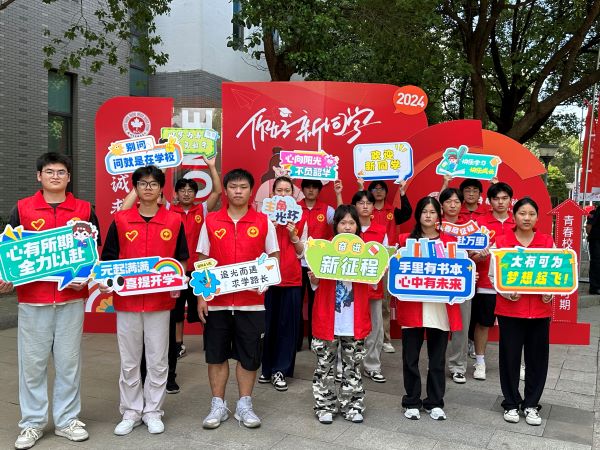 未来工匠学院的志愿者们整装待发,他们身着统一的志愿者服装,集合在迎新地点,迅速而有序地分配好了各自的任务。