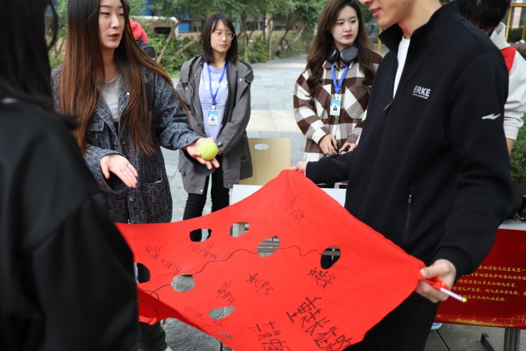 活动当天,校园内充满着浓厚的氛围,学生们在活动开始前纷纷在活动墙上签名留下属于自己的印记。学生们身着运动装,精神饱满、斗志昂扬,时刻准备迎接即将带来的挑战。本次定向越野活动采取“趣味游戏+定向越野”形式,设有七个游戏打卡点:重走长征路、纸条传薪、投入历史年轮、薪火相传、青春颂祖国、驿站传书、赤焰密令、四渡赤水。学生们共分9组,需每组同学合作共同完成任务。