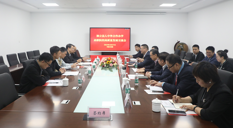 随后,三位校长分别简要介绍各自学校发展历程、基本情况,会议就人才培养模式改革、专业及课程建设、教育教学改革、提升教师教学科研能力和水平、校本教材开发、师资互聘共享,以及当前形势下中外合作办学面临的困难和应对之策等方面进行了交流研讨,并形成了广泛的共识。