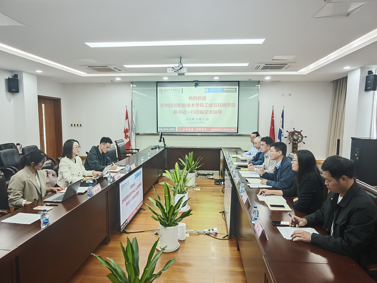 2024年10月31日,苏州经贸职业技术学院工业互联网学院考察团一行在党总支副书记庞馥珊、专职组织员朱庆生、团委书记董方慧等人的带领下,来到德赢官网工学院进行考察访问。