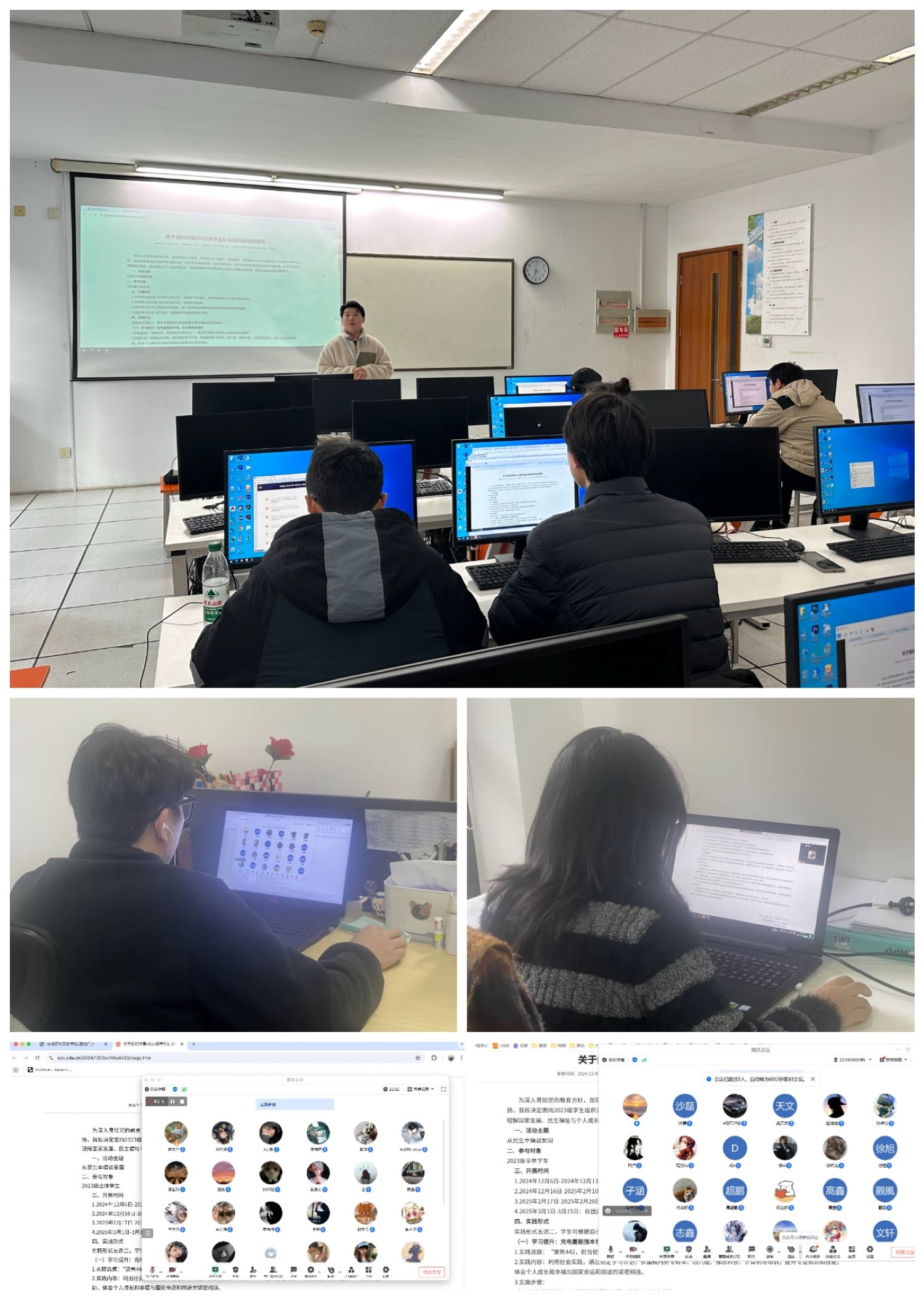 三位老师强调,在进行社会实践的过程中,同学们要始终遵守“安全第一、求真务实”的原则,杜绝形式主义,遵守纪律要求。同时,展示了许多社会实践的优秀案例,以生动的故事激励同学们深入社会,锻炼自我、服务社会。