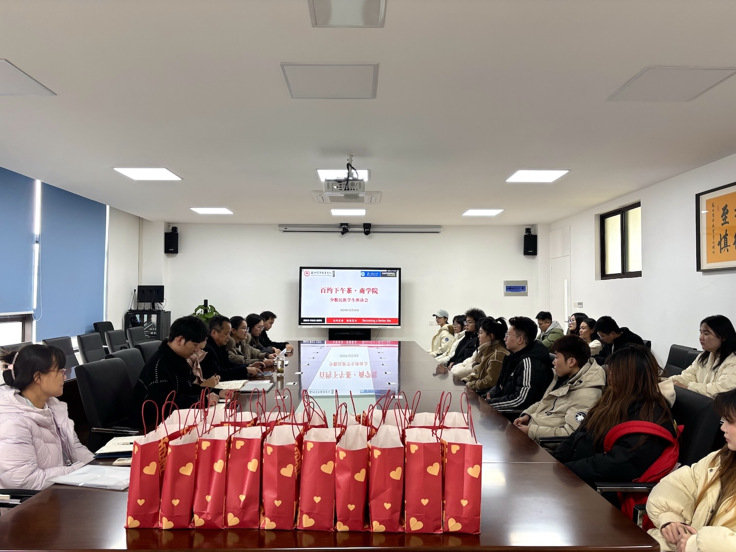 为深刻领会习近平总书记关于民族团结进步的重要论述,铸牢中华民族共同体意识,促进少数民族学生成长成才,同时落实学校“三走进”要求,商学院在12月18日重要节气冬至来临之际,成功举办了“百约下午茶”暨少数民族学生座谈会。德赢Vwin官方区域合作伙伴副校长、商学院院长沈宗根,以及学院领导、老师代表出席了此次座谈会,并与来自8个民族的15位少数民族代表欢聚一堂,共同参与了这场文化与情感的交流盛会。会议由商学院副院长、党总支书记花万敏主持。