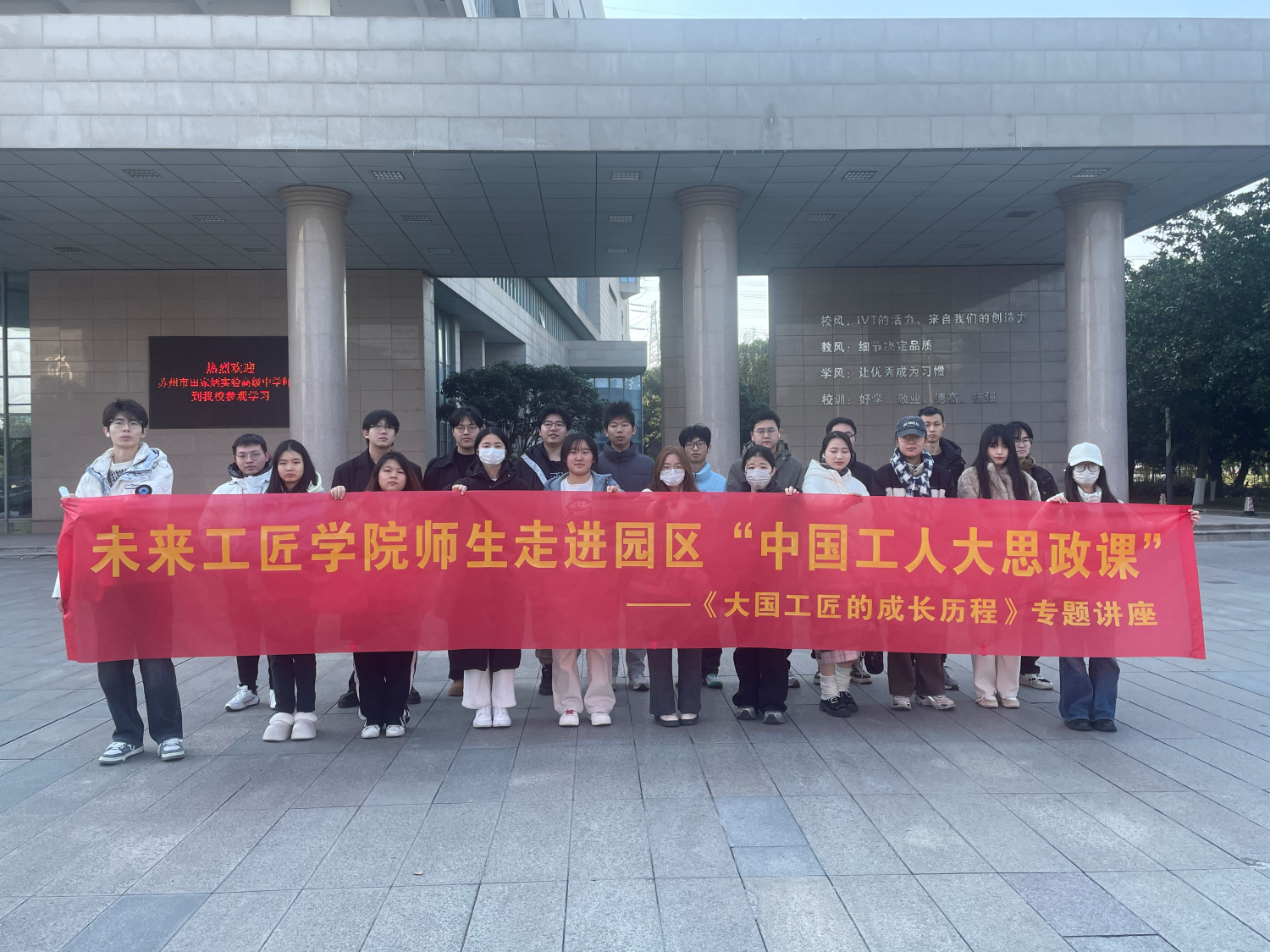 为进一步弘扬劳模精神、劳动精神、工匠精神,提升学生职业素养,12月20日下午,在辅导员杨帆的带领下,未来工匠学院信息安全技术应用专业和动漫制作技术专业20位学生代表走进园区“中国工人大思政课”,赴苏州工业园区职业技术学院参加《大国工匠的成长历程》专题讲座。
