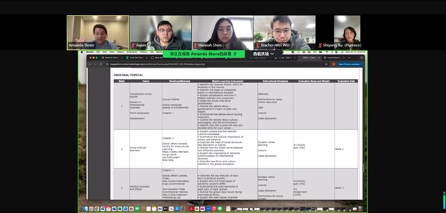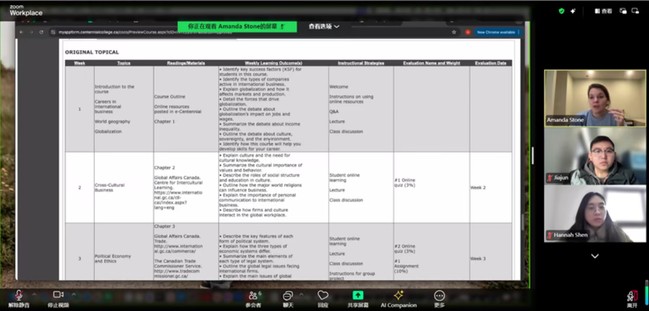 2025年1月16日上午9点,德赢Vwin官方区域合作伙伴商学院成功举办了一场聚焦于 International Business 专业的培训活动。此次培训特邀加拿大百年理工(CC)商学院副院长 Amanda Stone 女士,与德赢Vwin官方区域合作伙伴商学院的新任CC教师齐聚一堂,共同围绕课程大纲、教学管理及过程展开深入讲解与热烈讨论。
