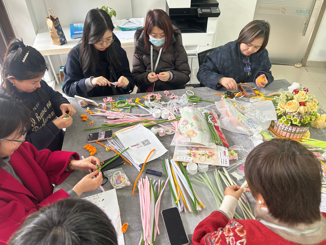 活动渐近尾声,大家纷纷将自己精心制作的扭扭棒手工花束相互馈赠,传递节日最美好的祝福。一朵朵饱含深情的手工花,承载着师生之间的真挚情谊,在校园中传递着无尽的温暖与关爱。