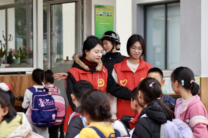 活动期间,志愿者团队分工协作,从多维度保障校园安全秩序。首先,在上下学高峰时段疏导校门周边交通,引导接送车辆有序停放;其次,设立安全引导岗,护送学生沿指定路线通行;最后,协助维持家长等候区秩序,通过举牌提示、流动劝导等方式,确保重点时段、重点路段的安全管控。志愿者们热情专业的服务赢得师生家长的一致好评,鲜艳的红马甲成为校园内外一道亮丽的风景线。