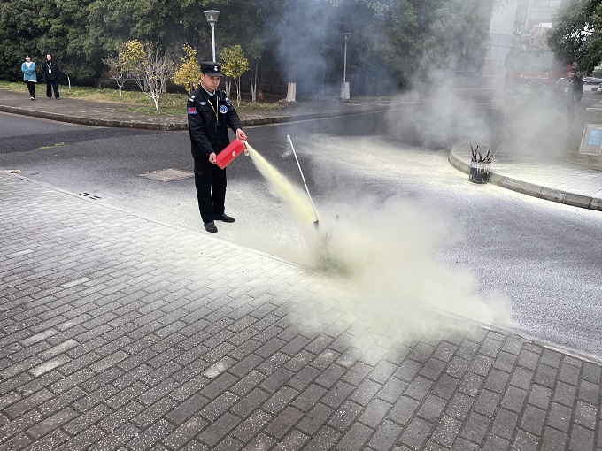 演练结束后,独墅湖消防中队队长刘洪潭为师生们进行了消防安全知识培训,详细讲解了灭火器的类型及正确使用方法,并邀请师生及物业公司代表现场操作灭火器扑灭模拟火源。最后,消防中队还给师生们现场进行了新型消防车高压喷水灭火表演,让大家近距离的感受到了消防科技的发展与进步。