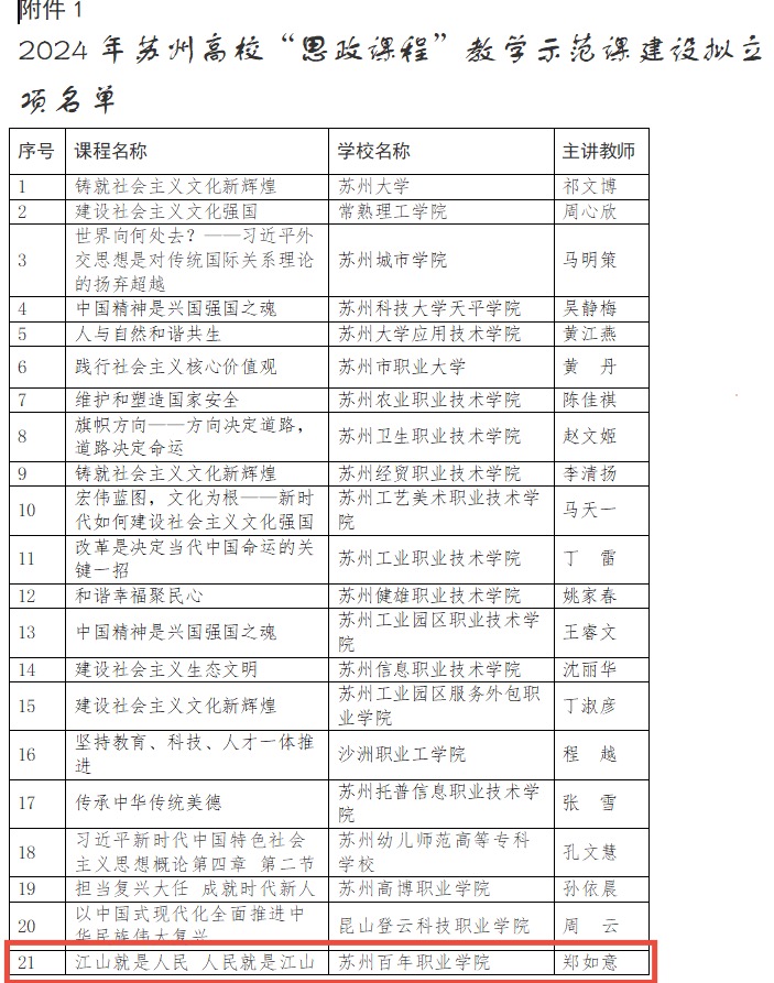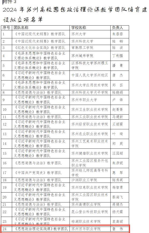 近期,苏州市教育局公布了《关于公布2024年苏州高校“思政课程”和“课程思政”教学示范课、思想政治理论课教学团队培育建设项目名单的通知》(苏教高〔2025〕1号)文件,德赢官网《思政理论实践课教学团队》入选苏州高校思想政治理论教学团队培育建设项目名单,《江山就是人民 人民就是江山》章节教学设计入选苏州高校“思政课程”教学示范课,标志着德赢官网在思想政治理论实践课建设方面阶段性成果。