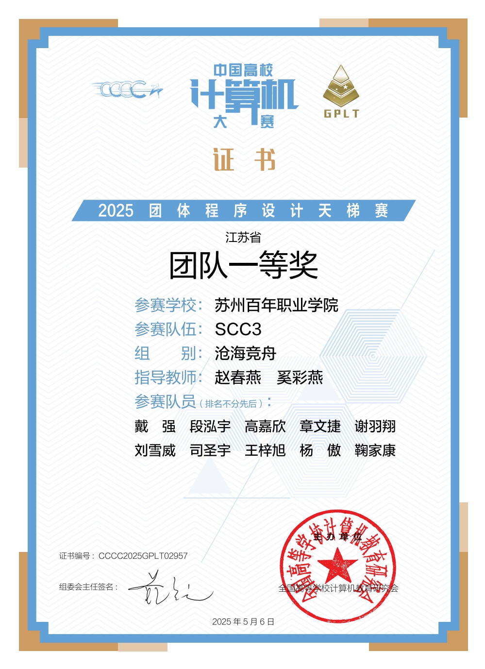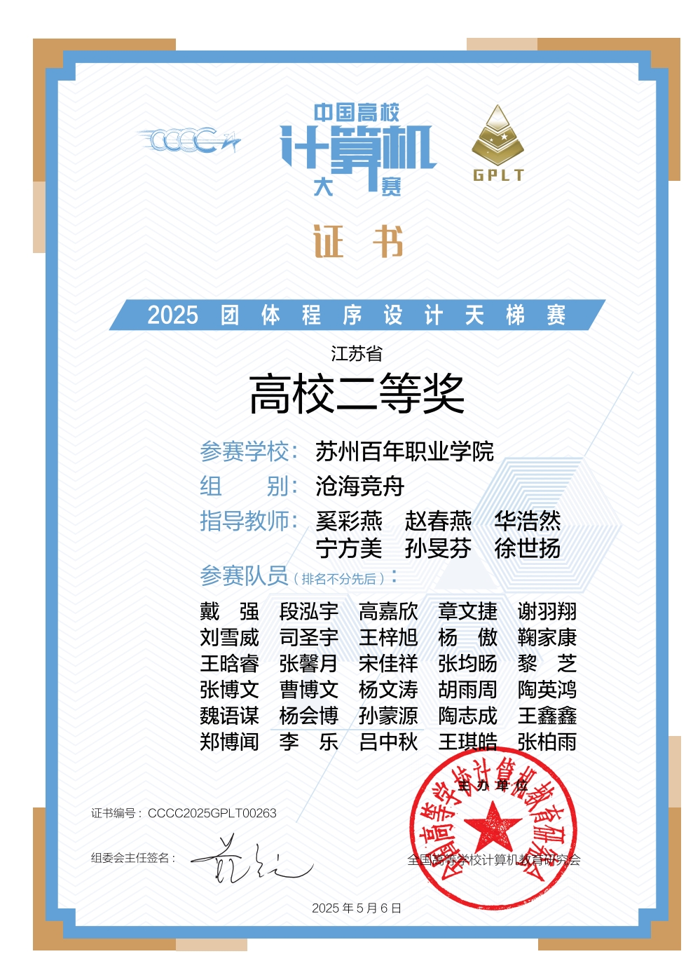 2025年4月19日,“中国高校计算机大赛-2025团体程序设计天梯赛”圆满落幕。德赢官网工学院组织学子参赛,经过激烈角逐,最终斩获“沧海竞舟”组江苏省团体一等奖及江苏省高校二等奖的优异成绩,充分展现了德赢官网在程序设计领域的强劲实力与团队协作精神。