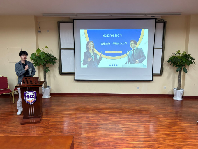 接着,学院机电一体化专业的徐旭结合《2023职场沟通白皮书》中“78%的晋升者将成功归因于表达力”这一数据,分享自己的语言成长历程,鼓励同学们重视表达能力的培养。最后,王光林同学分享了自己从表达生涩到成为“声音魔法师”的蜕变之路,用亲身经历诠释真诚表达的力量。
