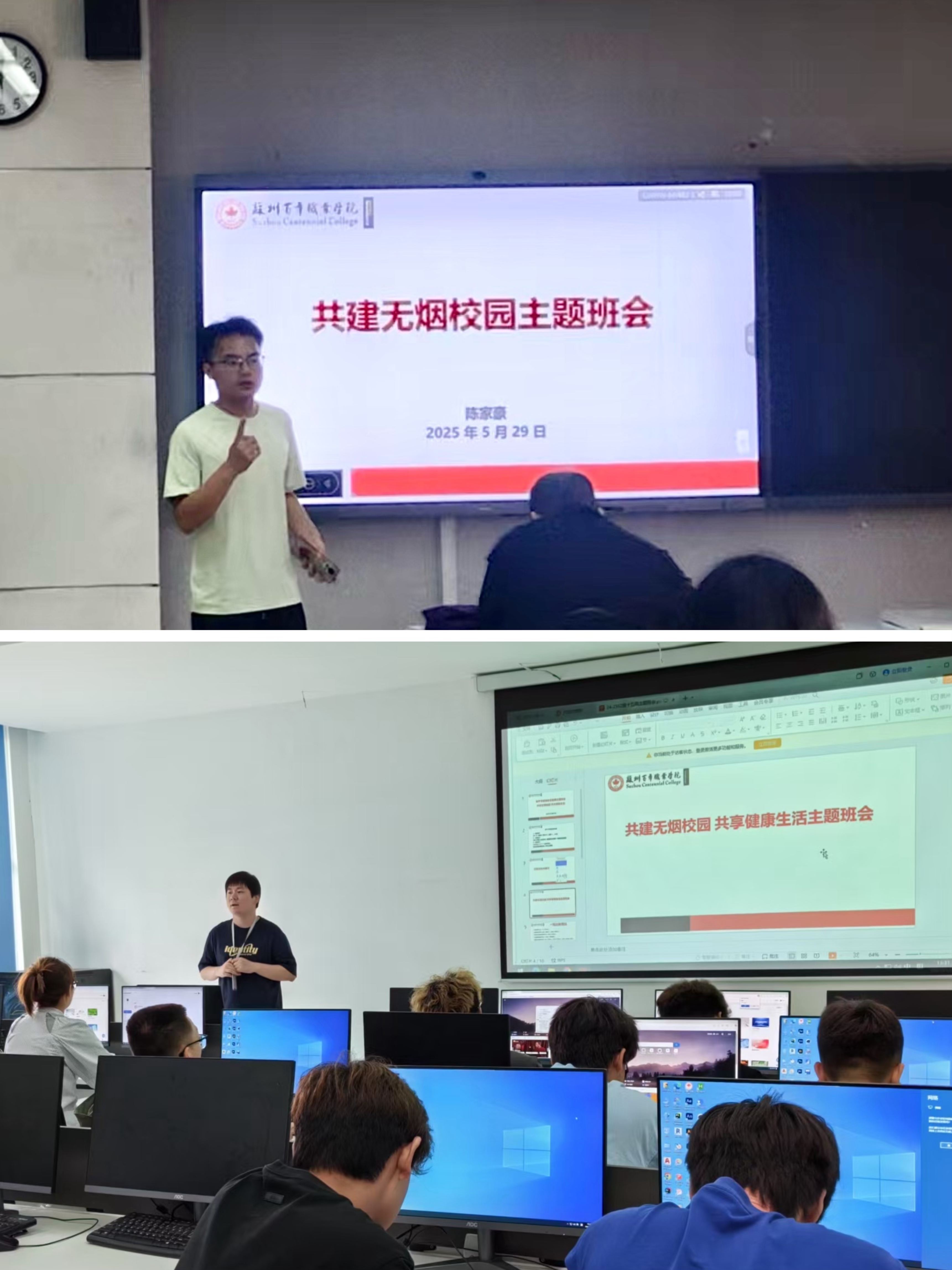 聚焦立德树人任务,共筑无烟校园环境。为深入推进学风建设,营造健康向上的校园环境,商学院分别围绕“出勤纪律”“校园禁烟”两大主题于上周和本周组织开展主题班会。班会旨在强化学生纪律意识,提升课堂出勤率,同时倡导无烟校园理念,引导学生养成健康生活习惯,为创建文明、和谐、积极向上的学习氛围和校园环境奠定基础。