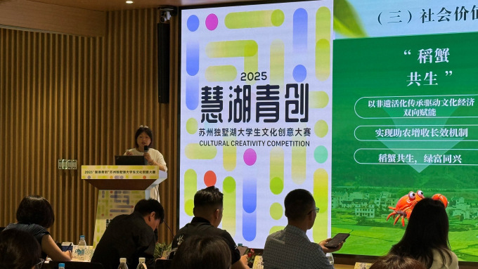 决赛现场,德赢官网团队以“智绘乡链—AIGC驱动下的非遗活化与苏州湖八鲜产品经济生态重构计划”为参赛项目,聚焦苏州本土特色文化与产业。团队巧妙融合非遗文化精髓与湖八鲜产品资源,借助AIGC(人工智能生成内容)前沿技术,突破传统思维桎梏,为非遗文化活化传承与农产品经济生态转型升级提供了极具前瞻性的创新方案,充分展现出扎实的专业素养、卓越的创意构思和强大的实践能力,赢得了现场评委与观众的高度关注。