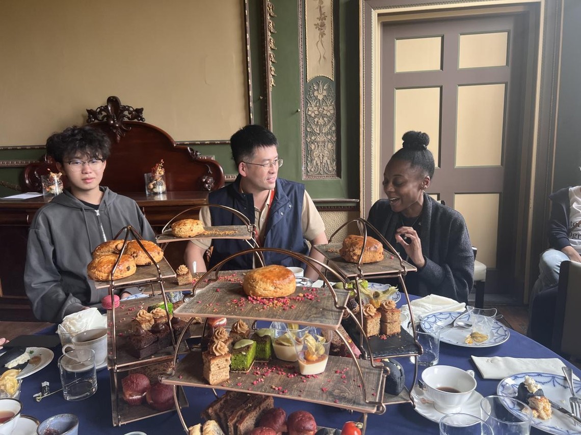 北安普顿郊外的德拉比庄园(Delapré Abbey)内,学生体验英式下午茶。银器托盘上的司康饼搭配凝脂奶油,北安Rachel老师对茶具历史的讲解:“茶杯手柄朝向体现社交距离”——苏州百年的学生在日记中写道:“这不仅是礼仪,更是英国阶级文化的符号学”。