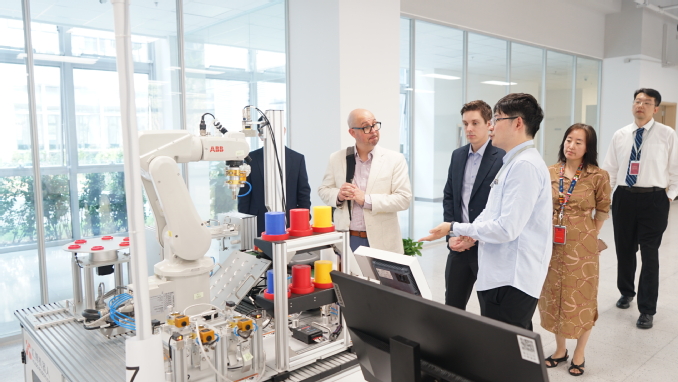 代表团参观了校园,走访智能制造学院课堂、工业互联网实训基地及艺术与创意设计学院艺术长廊,并观摩学生艺术作品展示。来宾对学院在智能制造、人工智能等领域的人才培养实践,以及学生在艺术创作中展现的创新活力给予高度评价。