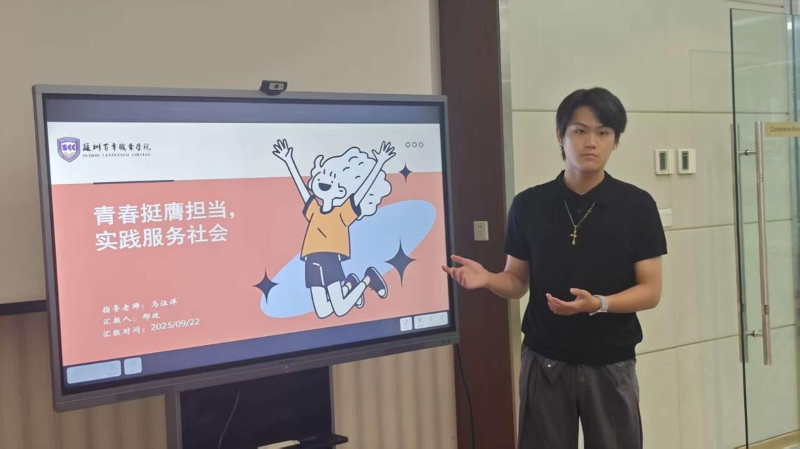 为全面检验暑期社会实践成果,总结分享经验,人工智能与大数据学院于9月22日晚在学院会议室,成功举办了2025年暑期社会实践答辩会。本次答辩会由学院团委组织,辅导员代表担任评委。参与答辩的学生代表由各班初评产生。