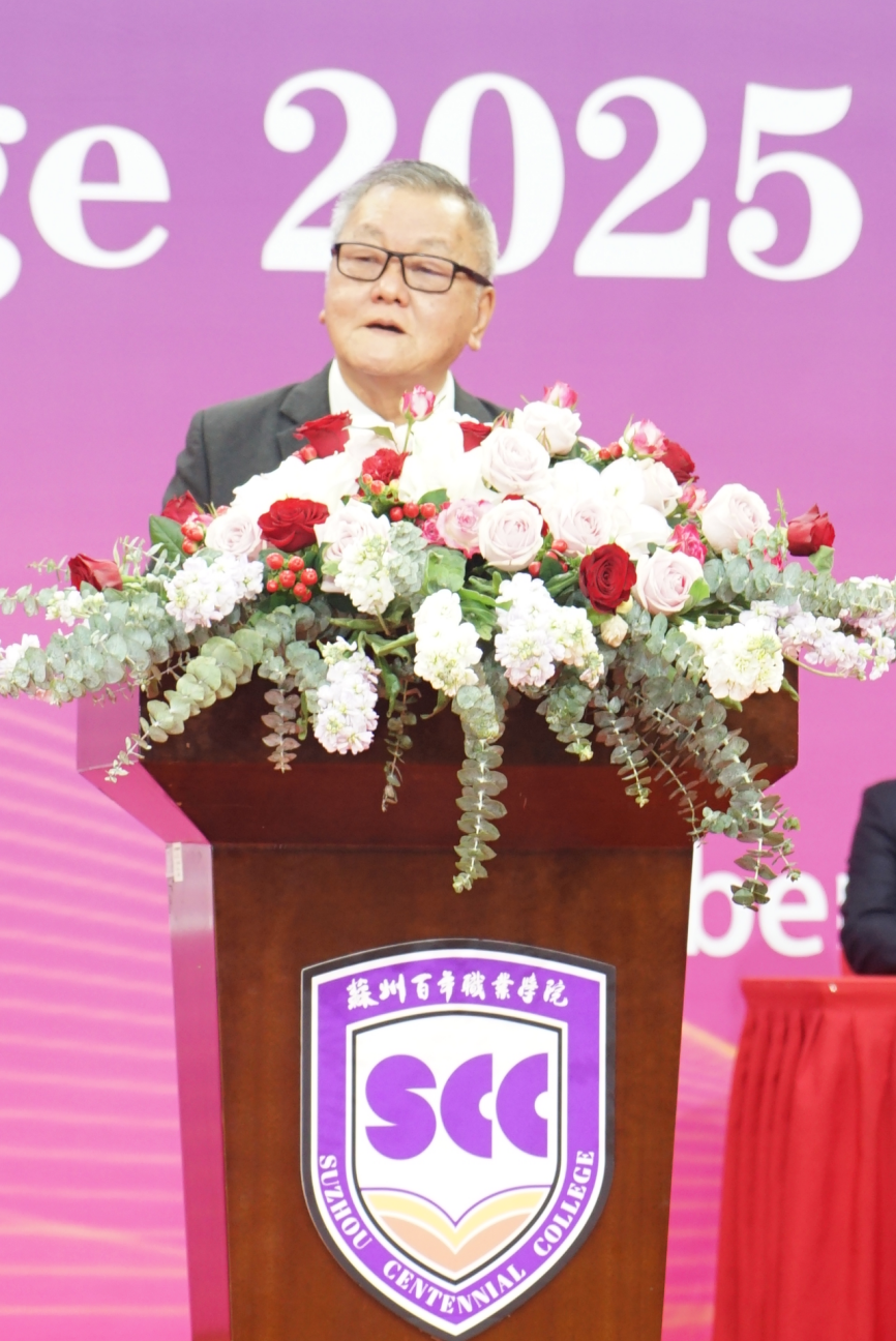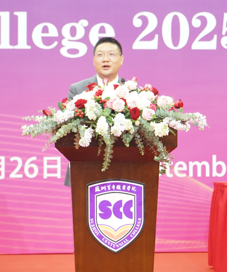 典礼上,校长李世明发表了热情洋溢的讲话,他首先代表学校热烈欢迎2025级新同学加入。他回顾了学校发展历程,指出作为全国首个中外合作办学高职院校,二十年来始终秉持“国际化、品质化、专业化”理念,扎根苏州、放眼世界,以学生为中心嫁接国际优质资源,面向长三角先进制造业与人工智能领域,培养了大批兼具家国情怀、国际视野与专业技能的国际化技术技能人才,成为国家构建现代职业教育体系的重要力量。