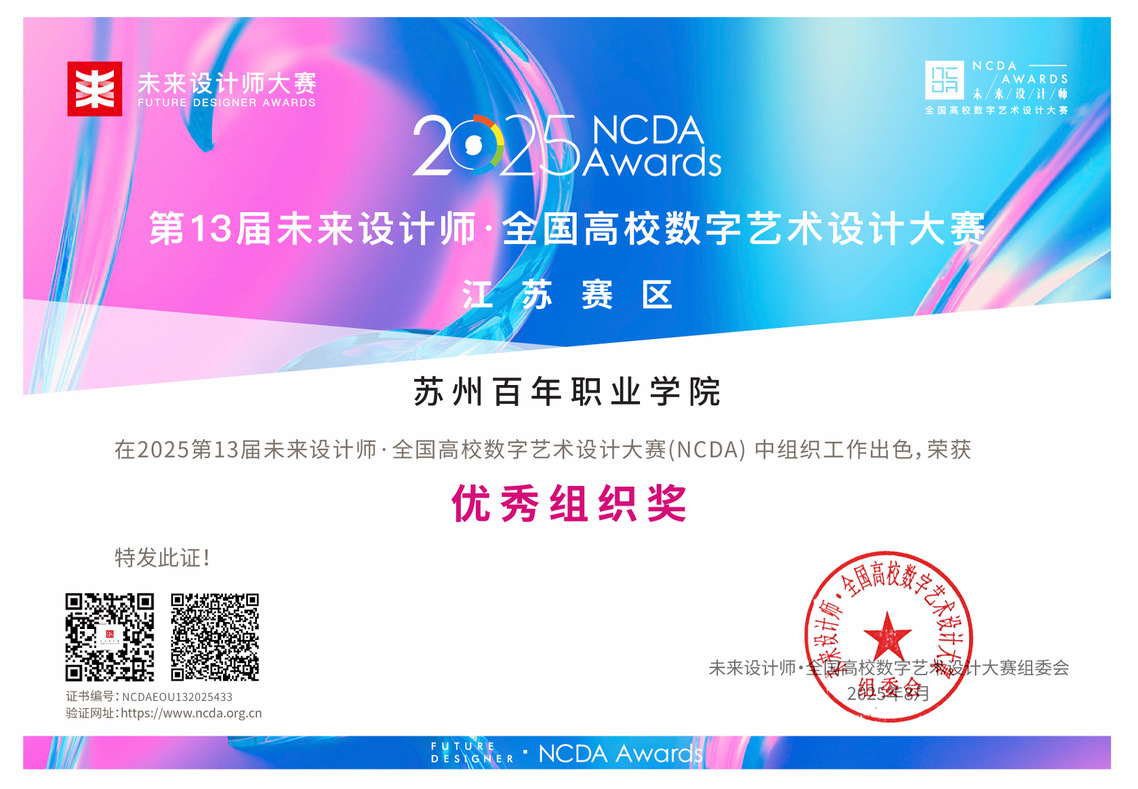 全国高校数字艺术设计大赛(NCDA)是教育部中国高等教育学会发布的《全国普通高校大学生竞赛白名单》赛事之一,由工业和信息化部人才交流中心主办,并获江苏省教育厅立项。享有国家A类竞赛权威认定。本赛事在提升人才培养质量,融合产业发展,提高创新创业能力等方面发挥着重要作用,本次大赛吸引了超过1000所高校参赛,苏州地区不仅有苏州大学、苏州科技大学和西交利物浦大学等实力雄厚本科院校,也涵盖了苏州城市学院、苏州工艺美术职业技术学院和苏州工业职业技术学院等特色鲜明的高职类院校同场竞技。