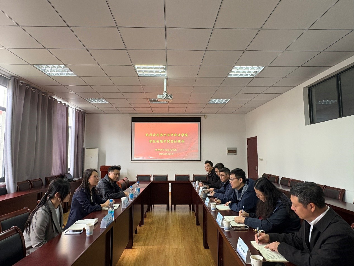 德赢Vwin官方区域合作伙伴智能制造学院为进一步优化专业布局,创新人才培养模式,推动集成电路技术专业建设,10月21日,智能制造学院副院长(主持工作)李露、副院长于朋、副院长赵春燕赴苏州科技大学物理科学与技术学院开展专题调研交流。会议由苏科大物理科学与技术学院院长姜昱丞主持,该院副院长郝翔、副书记周茹、副院长程新立、院长助理陈永强、院长助理李阳等领导班子成员热情接待并参与交流。