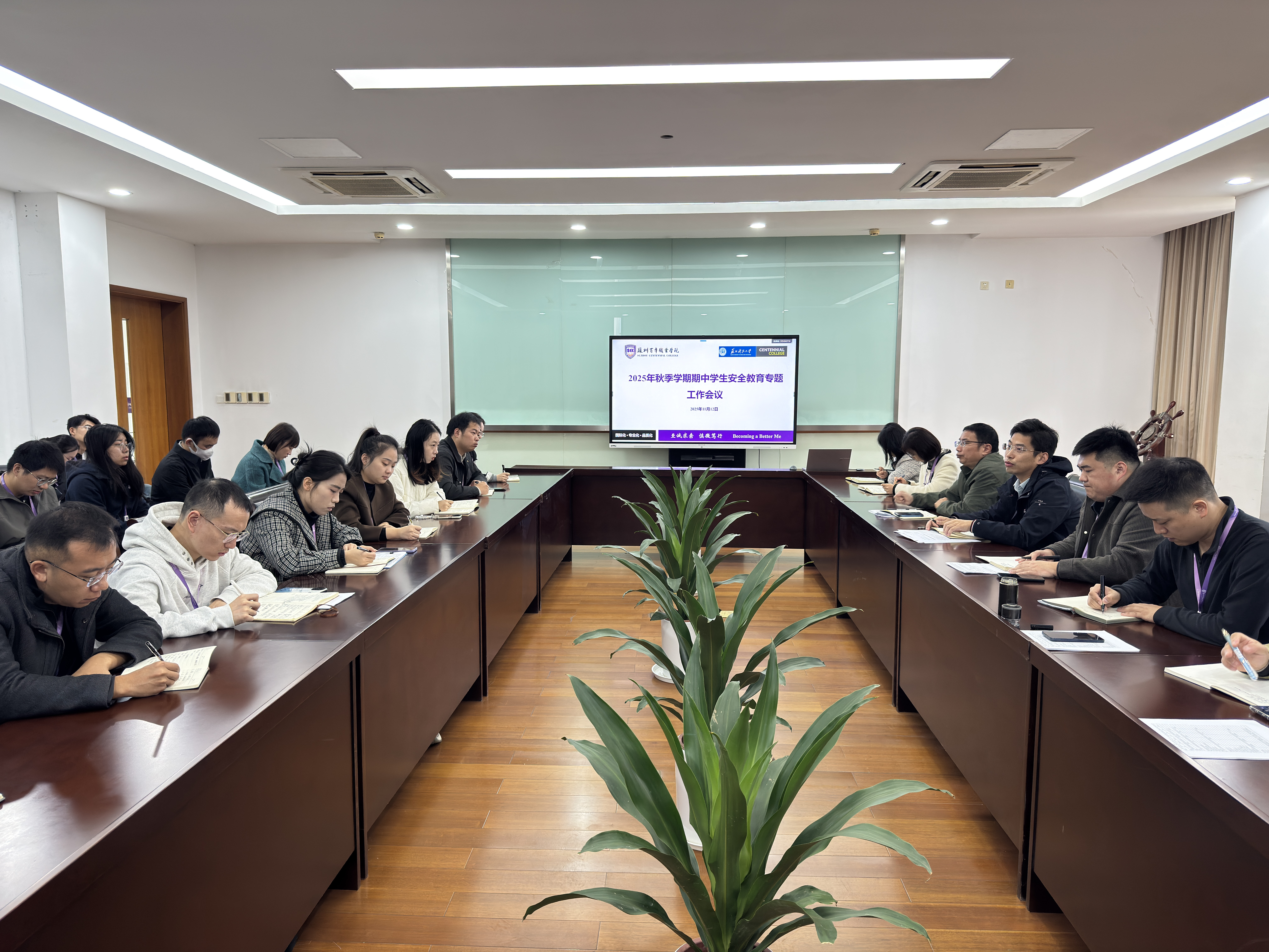 学生事务部(安全保卫部)全体工作人员、各二级学院副书记及全体辅导员参加会议。